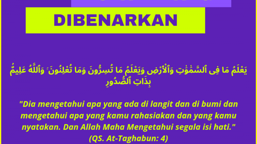 “Dia mengetahui apa yang ada di langit dan di bumi dan mengetahui apa yang kamu rahasiakan dan yang kamu nyatakan. Dan Allah Maha Mengetahui segala isi hati.” (QS. At-Taghabun: 4)