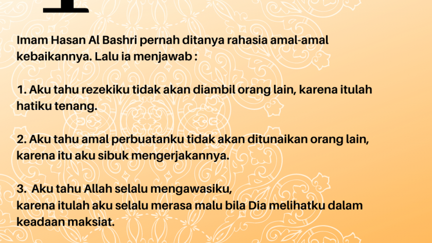 Imam Hasan Al Bashri pernah ditanya rahasia amal-amal kebaikannya. Lalu ia menjawab,”
