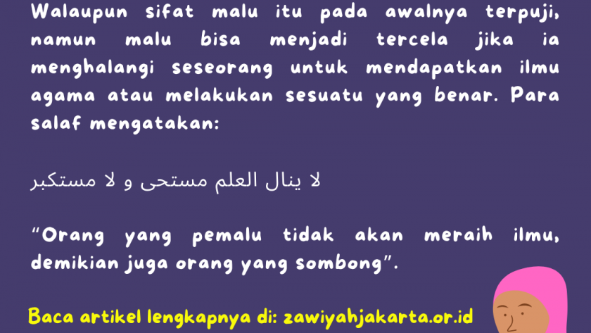 *Dua,* malu yang menghalangi seseorang dari ilmu dan kebaikan merupakan malu yang tercela.