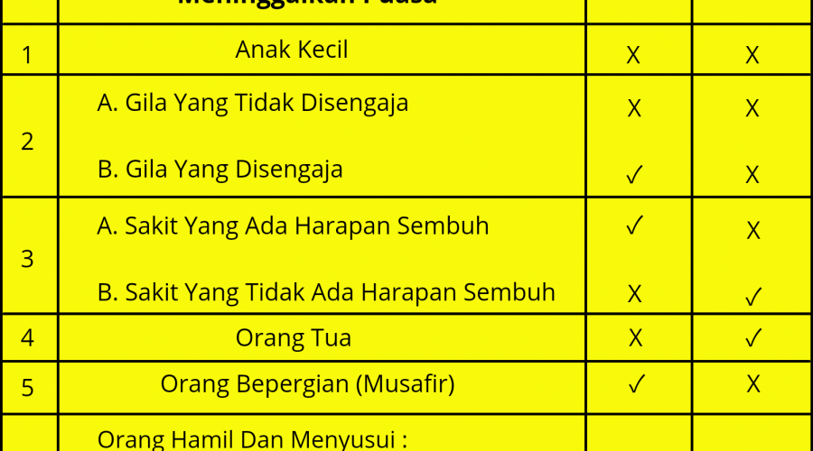 Tabel Qodho Dan Fidyah Orang Yang Tidak Berpuasa Ramadhan