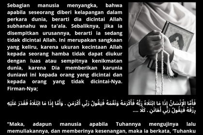 Oleh; Hayat Abdul Latief Sebagian manusia menyangka, bahwa apabila seseorang diberi kelapangan dalam perkara dunia, berarti dia dicintai Allah subhanahu wa ta’ala. …