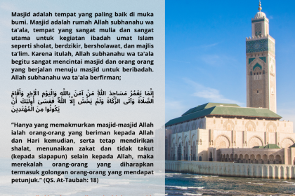Oleh: Hayat Abdul Latief Masjid adalah tempat yang paling baik di muka bumi. Masjid adalah rumah Allah subhanahu wa ta’ala, tempat yang …