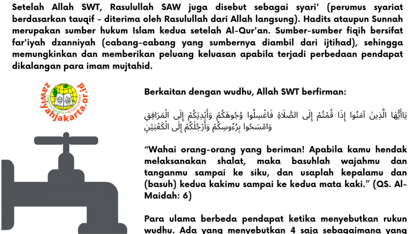 Dua, QS. Al-Maidah: 6 merupakan ayat Al-Qur’an sebagai rujukan amaliyah wudhu.