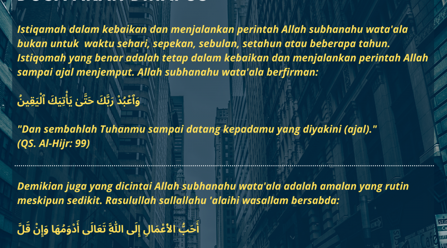 Oleh: Hayat Abdul Latief Istiqamah dalam kebaikan dan menjalankan perintah Allah subhanahu wata’ala bukan untuk waktu sehari, sepekan, sebulan, setahun atau beberapa …