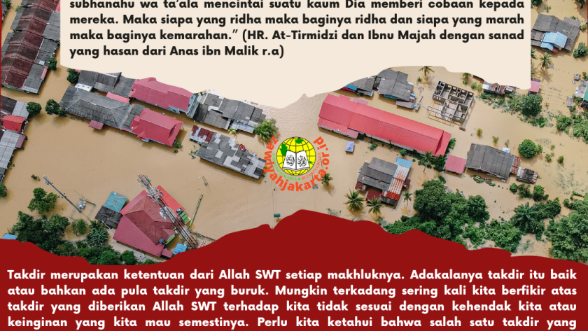 Takdir merupakan ketentuan dari Allah subhanahu wa ta’ala setiap makhluknya. Adakalanya takdir itu baik atau bahkan ada pula takdir yang buruk. Mungkin terkadang sering kali kita berfikir atas takdir yang diberikan Allah subhanahu wa ta’ala terhadap kita tidak sesuai dengan kehendak kita atau keinginan yang kita mau semestinya. Perlu kita ketahui bahwa salah satu takdir yang diberikan oleh Allah subhanahu wa ta’ala itu adalah ujian dan cobaan yang pastinya disesuaikan dengan kadar kemampuan dari hambanya. Namun, tidak sedikit umat manusia atau bahkan kita sendiri merasa bahwa ujian dan cobaan yang merupakan takdir Allah itu melebihi taraf kemampuannya.