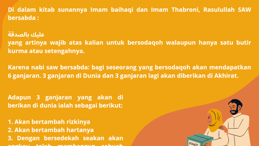 Oleh karena itu, penting bagi kita untuk senantiasa bershodaqoh. Karena shodaqoh itu adalah suatu amalan yang terlihat sangat mudah untuk dilakukan dengan nominal yang tak terbatas namun memiliki fungsi dan faedah yang sangat banyak di dalamnya.