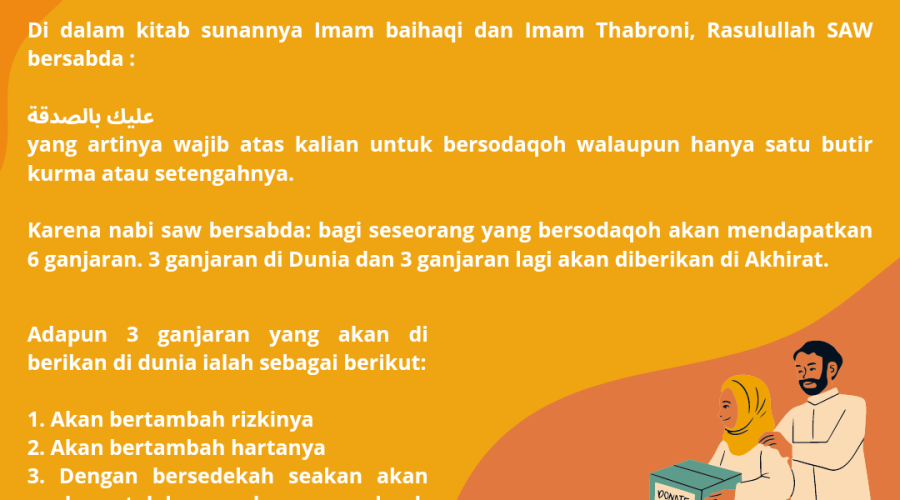 Di dalam kitab Sunannya Imam Baihaqi dan Imam Thabroni, Rasulullah SAW bersabda: عليك بالصدقة yang artinya wajib atas kalian untuk bersodaqoh walaupun …