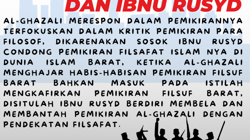 Al-Ghazali merupakan sosok pemikir muslim yang mempunyai karakter pemikirannya sebagai golongan fiilsafat Islam di dunia Islam Timur. Sedangkan Ibnu Rusyd seorang pemikir muslim yang mempunyai basis pemikirannya filsafat Islam di dunia Islam Barat.