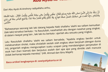 Oleh: Hayat Abdul Latief Dari Abu Ayub Al-Anshory r.a; أنَّ رَجُلًا جَاءَ إِلَى النَّبيِّ صلى الله عليه وسلم فَقَالَ: عِظْنِي وَأَوْجِزْ، …