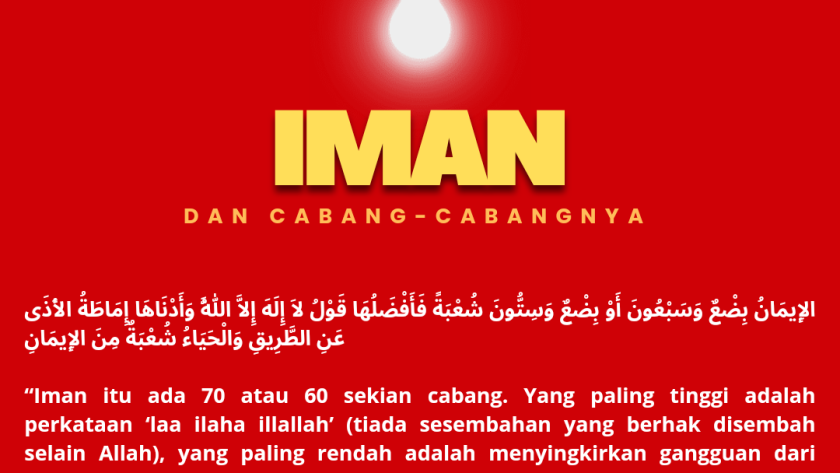 “Iman itu ada 70 atau 60 sekian cabang. Yang paling tinggi adalah perkataan ‘laa ilaha illallah’ (tiada sesembahan yang berhak disembah selain Allah), yang paling rendah adalah menyingkirkan gangguan dari jalanan, dan sifat malu merupakan bagian dari iman.” (HR. Bukhari-Muslim)