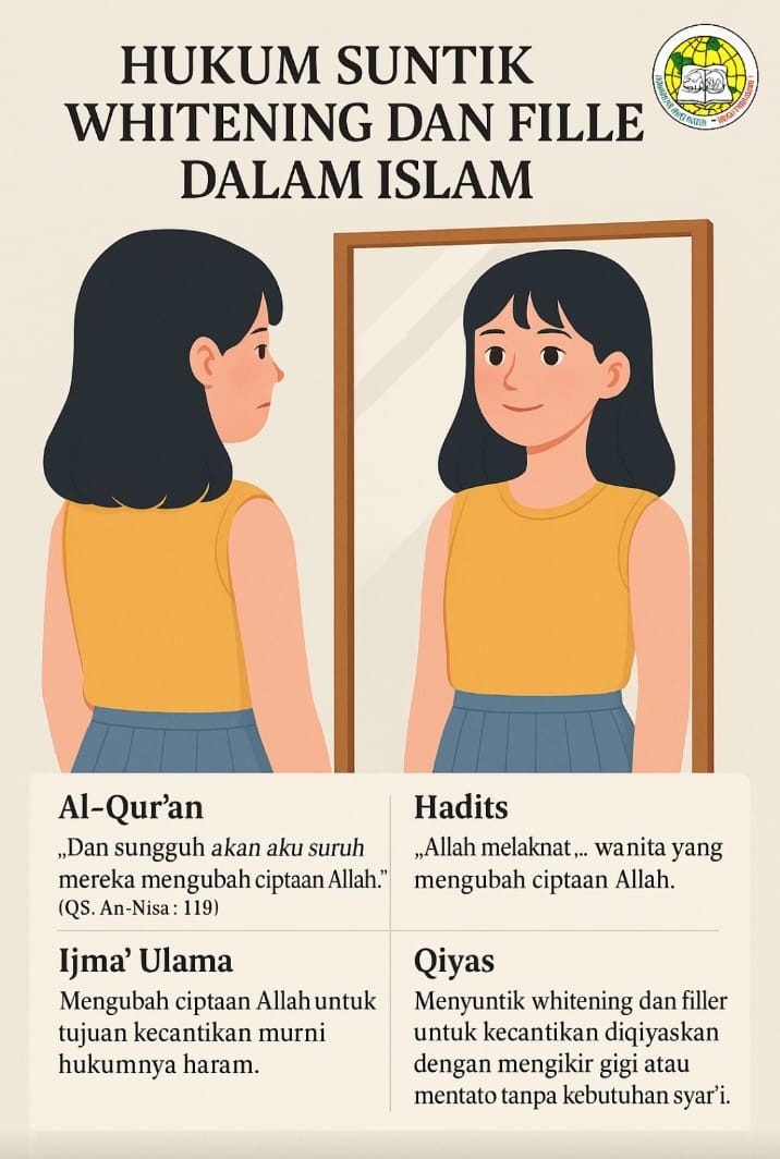Dalam era modern saat ini, standar kecantikan kerap menjadi tekanan sosial yang kuat, khususnya bagi kaum perempuan. Perawatan estetika seperti suntik whitening (pemutih kulit) dan filler (pengisi wajah) semakin populer untuk mempercantik tampilan fisik secara instan. Fenomena ini menimbulkan pertanyaan penting dalam perspektif hukum Islam: Apakah tindakan ini dibolehkan dalam syariat?