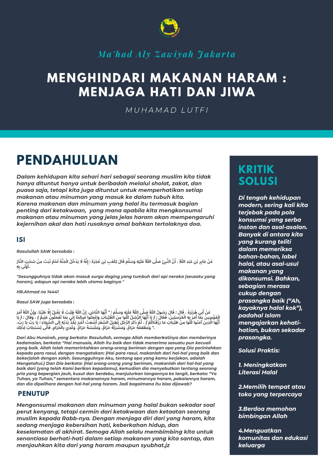 Menghindari Makanan Haram : Menjaga Hati Dan Jiwa