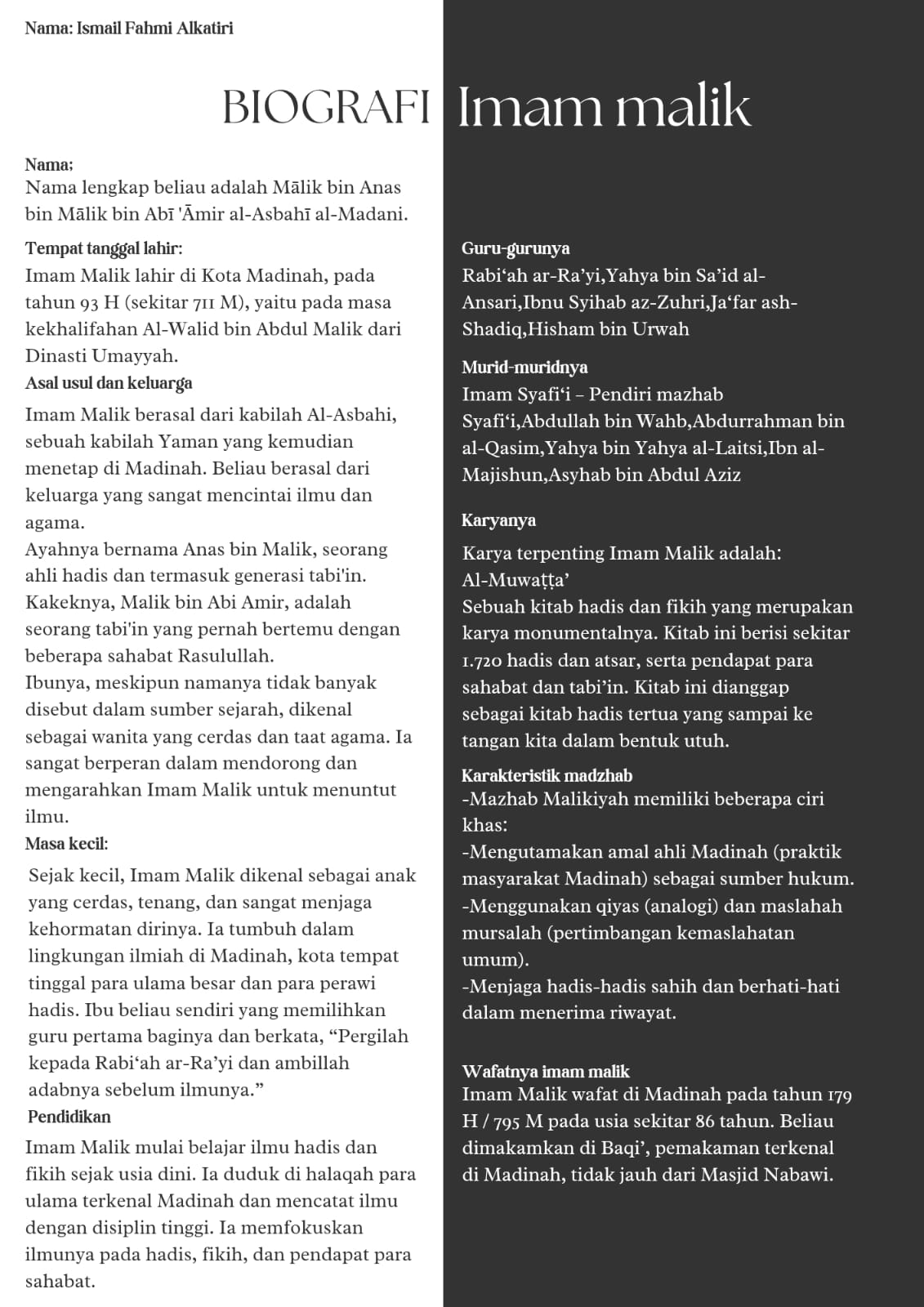 Nama lengkap beliau adalah Mālik bin Anas bin Mālik bin Abī ‘Āmir al-Asbahī al-Madani.