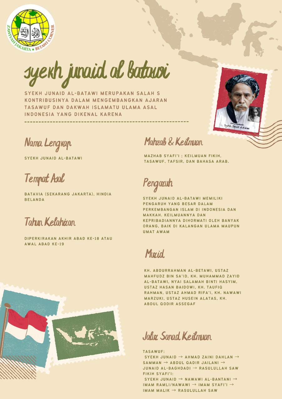 • Syekh Mahmud al-Minangkabawi, yang menyebarkan nilai-nilai ajaran Syekh Junaid di Sumatera Barat, sekaligus menjembatani dialog keilmuan antara Betawi dan Minangkabau.