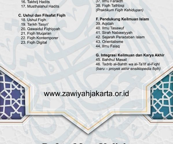 Daftar Mata Kuliah Ma’had Aly Zawiyah Jakarta S1 & S2