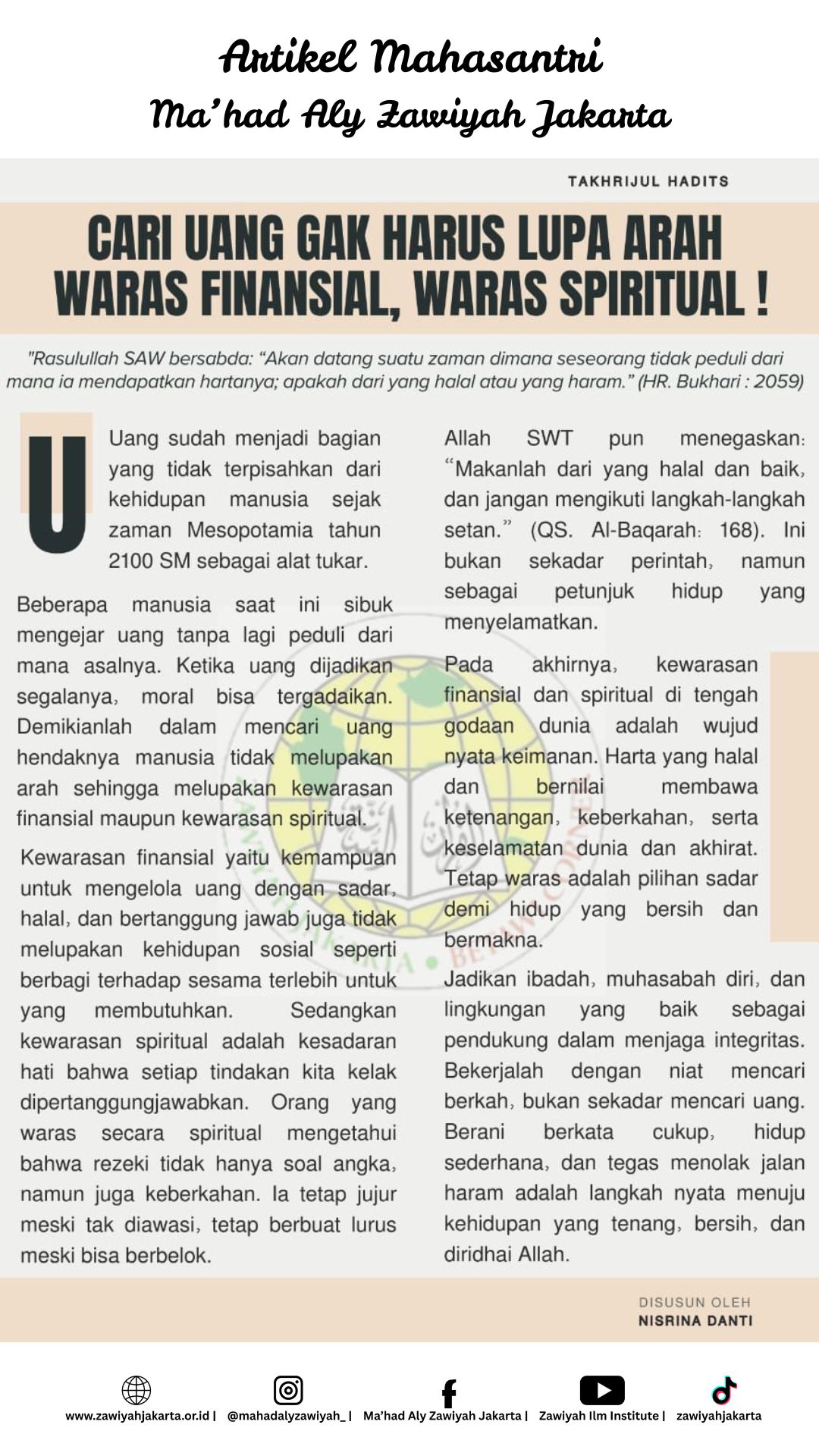 CARI UANG GAK HARUS LUPA ARAH_WARAS FINANSIAL, WARAS SPIRITUAL !