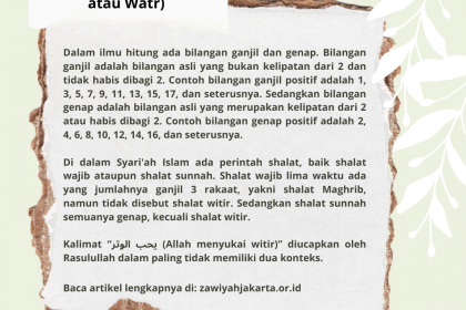 Oleh: Hayat Abdul Latief Dalam ilmu hitung ada bilangan ganjil dan genap. Bilangan ganjil adalah bilangan asli yang bukan kelipatan dari 2 dan …