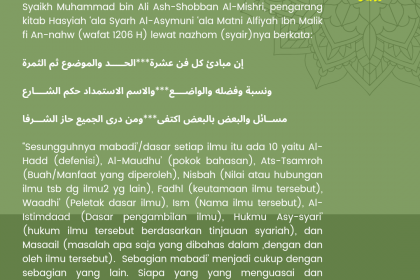 المبادئ العشرة (10 Dasar Ilmu) Syaikh Muhammad bin Ali Ash-Shobban Al-Mishri, pengarang kitab Hasyiah ‘ala Syarh Al-Asymuni ‘ala Matni Alfiyah Ibn Malik fi …
