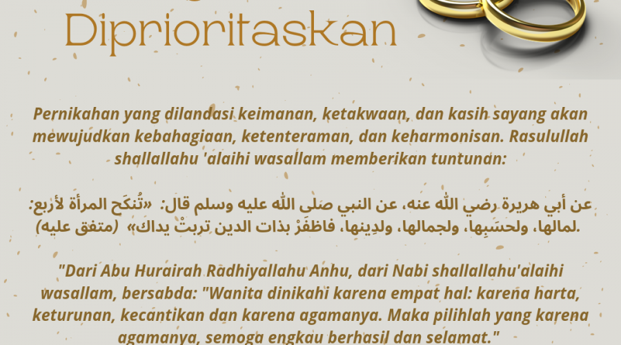 Oleh: Hayat Abdul Latief Pernikahan yang dilandasi keimanan, ketakwaan, dan kasih sayang akan mewujudkan kebahagiaan, ketenteraman, dan keharmonisan. Rasulullah shallallahu ‘alaihi wasallam …