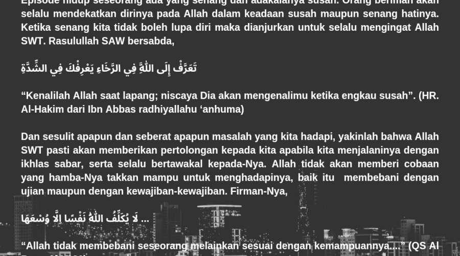 Oleh: Hayat Abdul Latief Sebagaimana hari tidak selamanya siang juga tak selamanya malam. Dalam pergantian siang dan malam sudah tanda-tanda kebesaran Allah …
