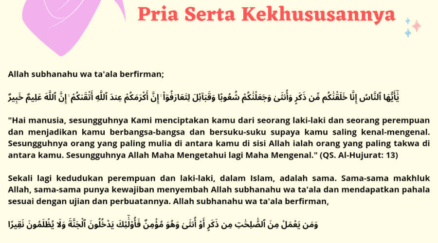 Persamaan Wanita dan Perbedaannya dengan Pria Serta Kekhususannya