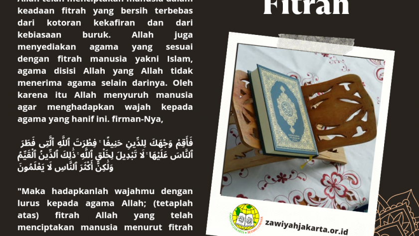 “Maka hadapkanlah wajahmu dengan lurus kepada agama Allah; (tetaplah atas) fitrah Allah yang telah menciptakan manusia menurut fitrah itu. Tidak ada peubahan pada fitrah Allah. (Itulah) agama yang lurus; tetapi kebanyakan manusia tidak mengetahui.” (QS. Ar-Rum: 30)