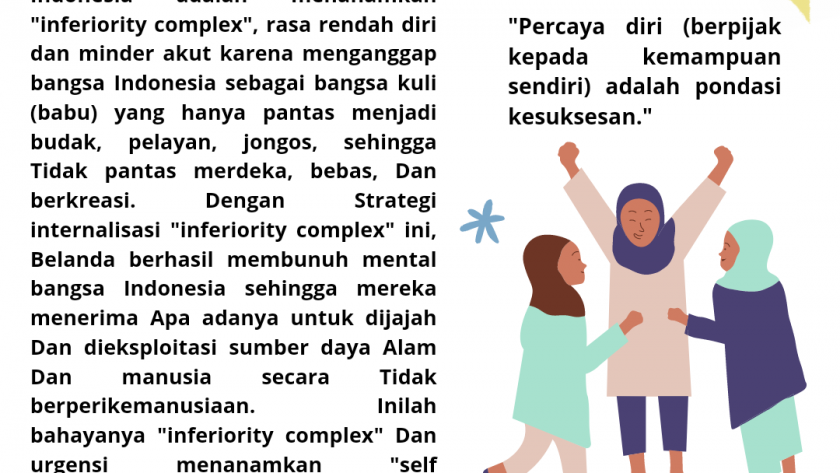 Menurut KH As’ad Said Ali, salah satu cara Belanda menjajah bangsa Indonesia adalah menanamkan “inferiority complex”, rasa rendah diri dan minder akut karena menganggap bangsa Indonesia sebagai bangsa kuli (babu) yang hanya pantas menjadi budak, pelayan, jongos, sehingga Tidak pantas merdeka, bebas, Dan berkreasi. Dengan Strategi internalisasi “inferiority complex” ini, Belanda berhasil membunuh mental bangsa Indonesia sehingga mereka menerima Apa adanya untuk dijajah Dan dieksploitasi sumber daya Alam Dan manusia secara Tidak berperikemanusiaan. Inilah bahayanya “inferiority complex” Dan urgensi menanamkan “self confidence” kepada bangsa Indonesia agar berani menegakkan kepala Dan harga diri dengan Prestasi.