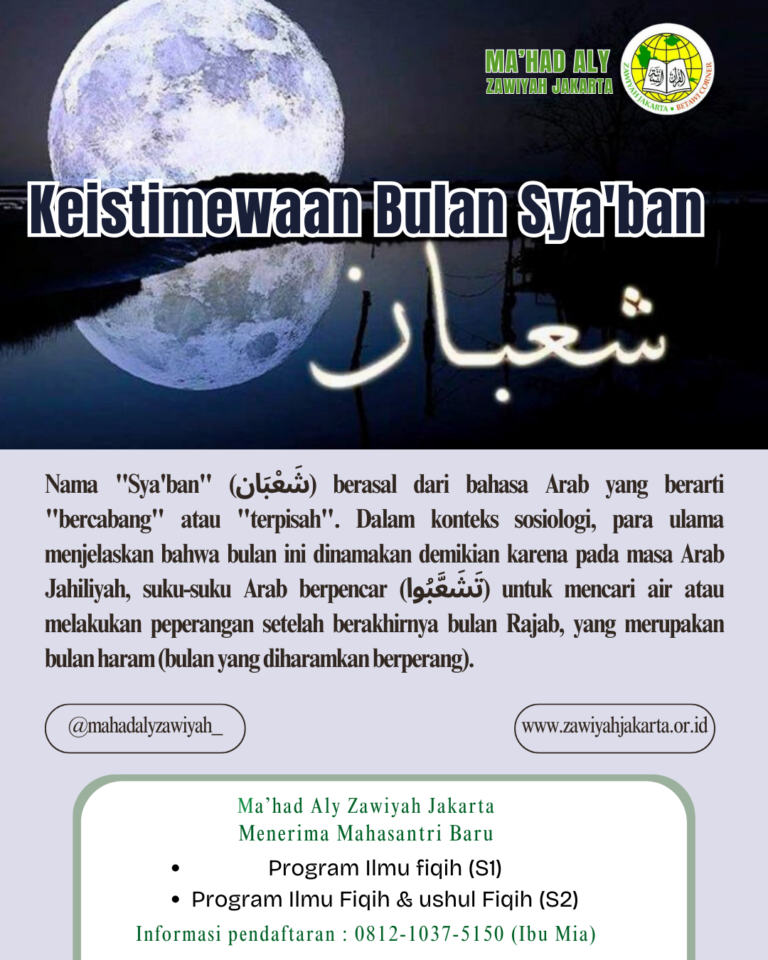 Bulan Sya’ban memiliki banyak keistimewaan: