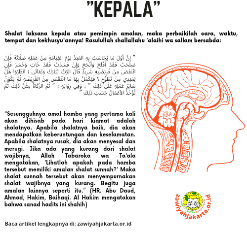Hadits di atas berbicara tentang rasa malu yang benar dengan menjaga kepala dan sesuatu yang dikandungnya dan seterusnya. Apa saja yang ada di kepala?