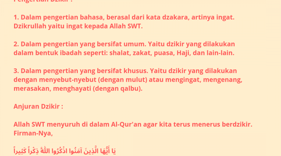 Oleh: Hayat Abdul Latief   *Makna Dzikir*   Memahami Makna Dzikir   Pengertian Dzikir,   1. Dalam pengertian bahasa, berasal dari kata dzakara, …