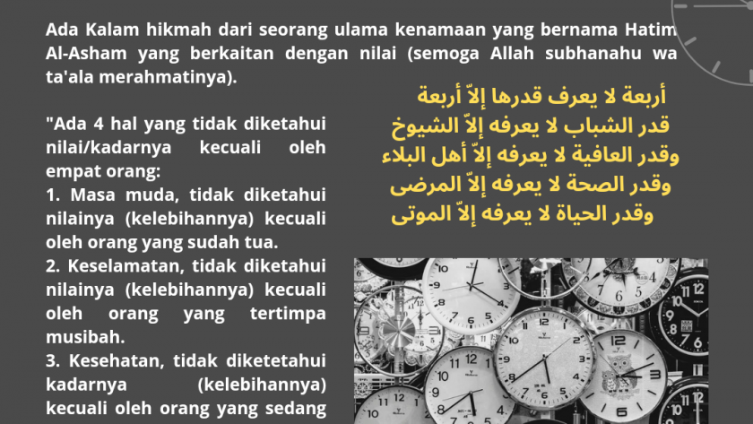 Ada Kalam hikmah dari seorang ulama kenamaan yang bernama Hatim Al-Asham yang berkaitan dengan nilai -semoga Allah subhanahu wa ta’ala merahmatinya-,